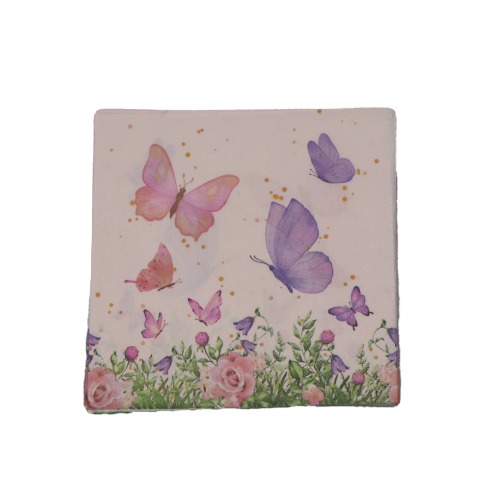 Este guardanapo com estampa de borboletas em tons suaves e flores românticas é perfeito para compor mesas em festas com temas como jardim encantado, primavera ou celebrações delicadas como chás e aniversários. Ideal para quem ama detalhes que fazem a diferença na decoração!